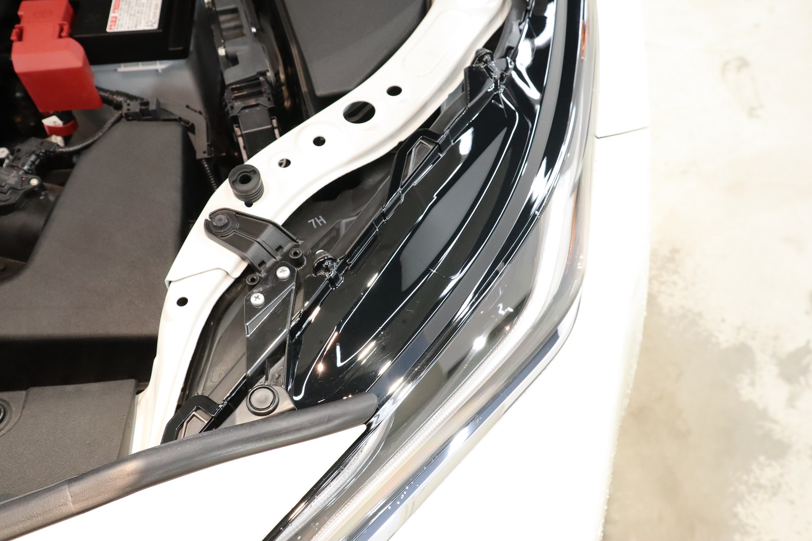 ご自宅での洗車はビューティフルカーズの純水器をご使用との事で、ボディ表面には水ジミは見受けられませんでしたが、ボンネット内側に納車前に付着してものでしょうか、水ジミがございましたので除去してまいります。