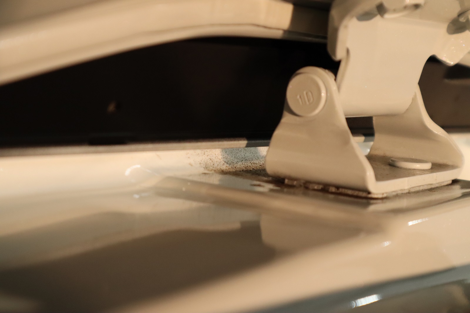 リアゲートヒンジ部分にグリスまじりの砂埃が付着しておりましたのでキレイにしてまいります。