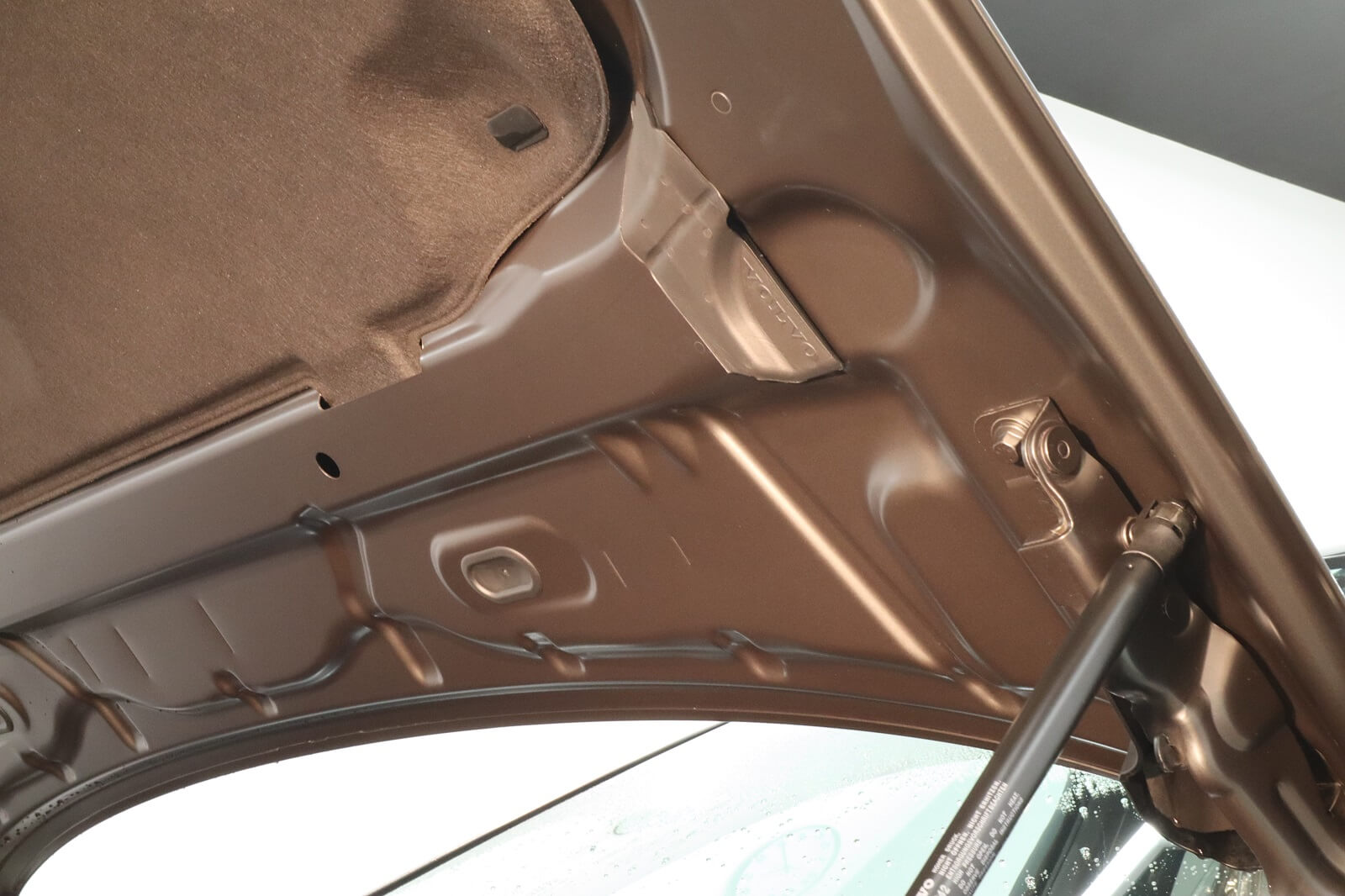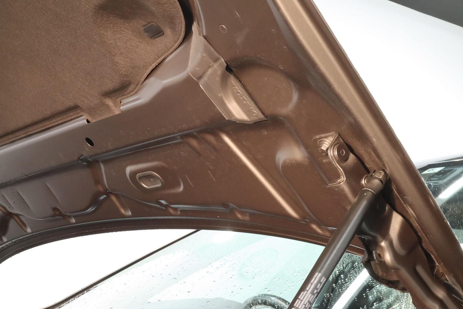 ボンネット裏に水ジミがありましたのでキレイにしてまいります。洗浄前。