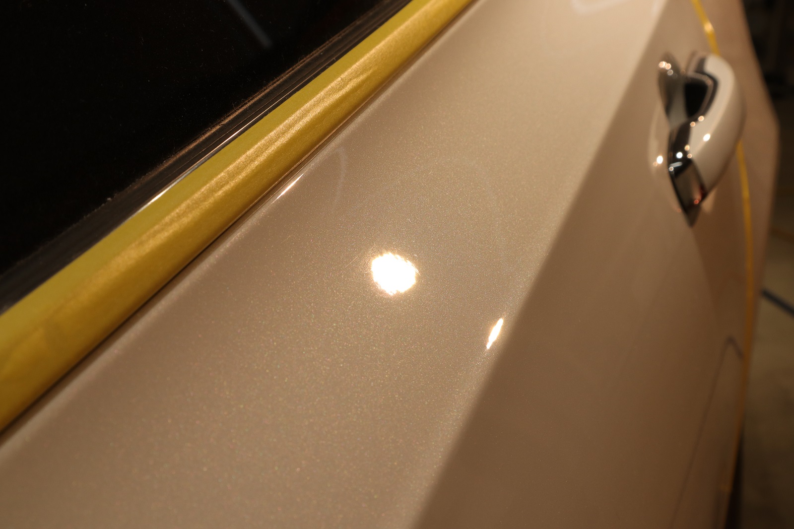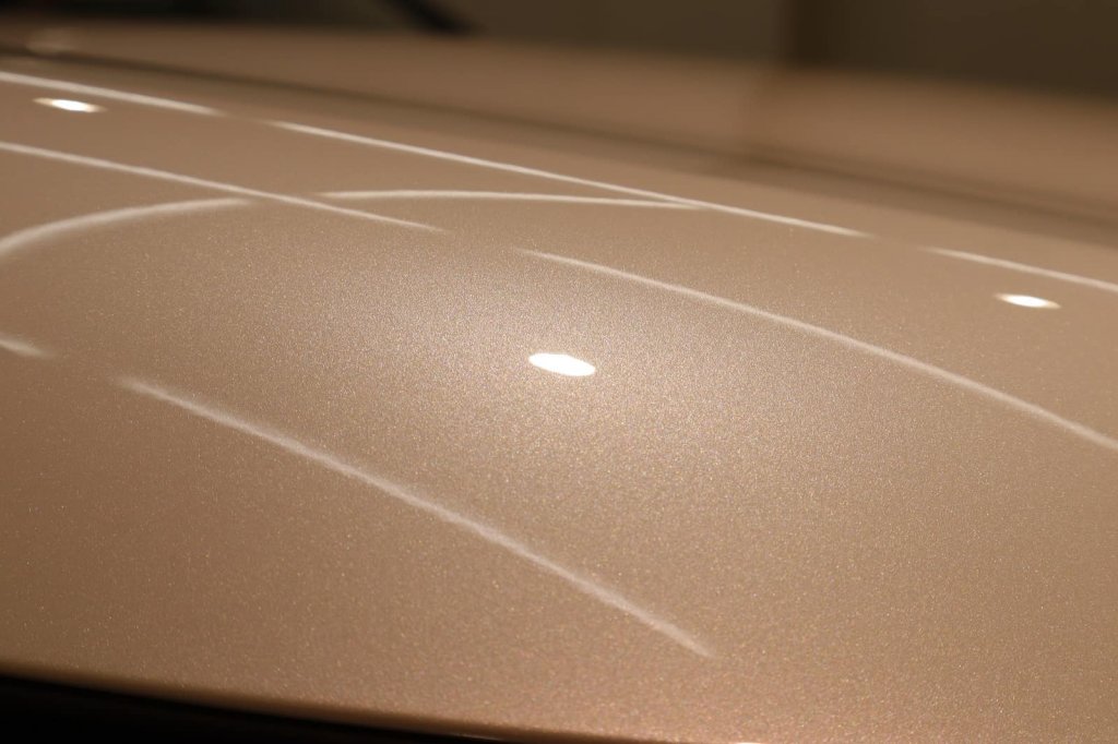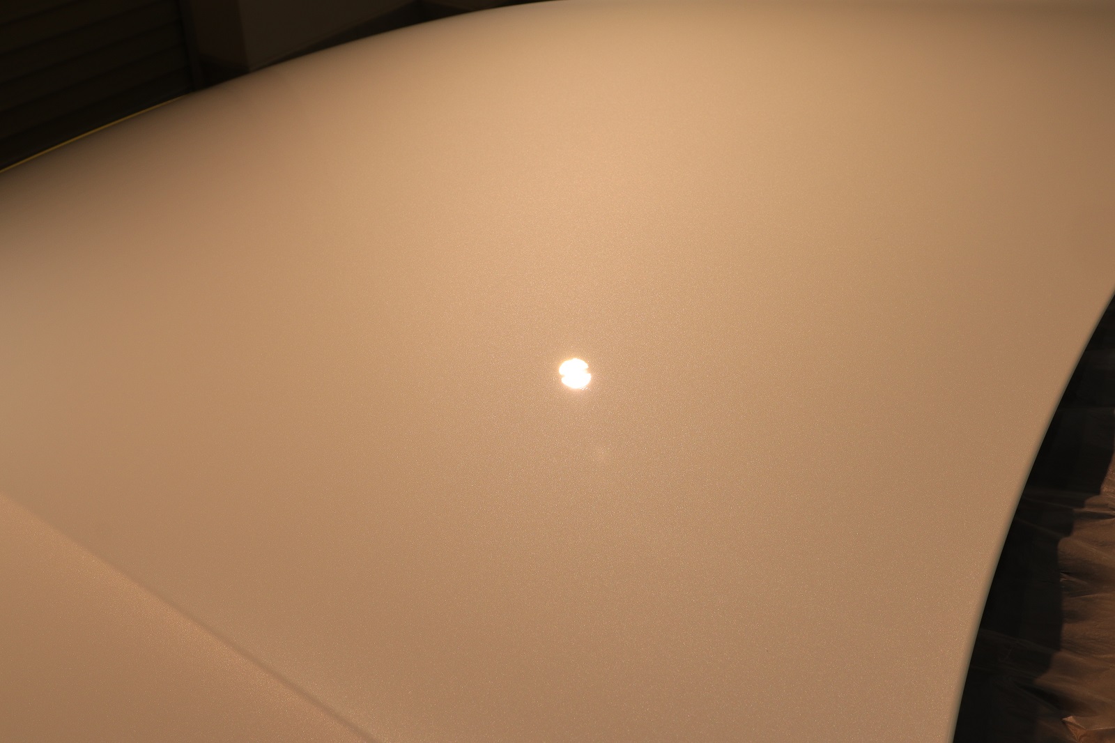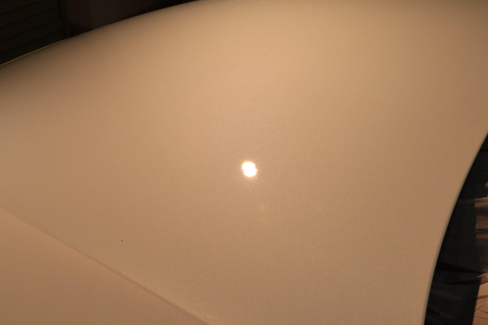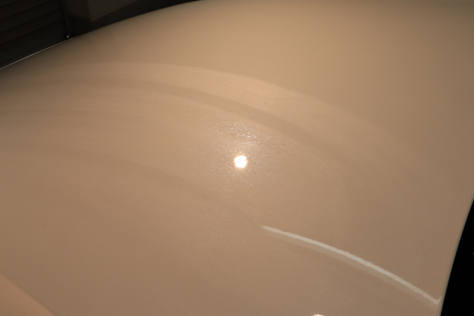 塗装面がモヤモヤし写り込みがぼんやりしております。こちらも美しく磨き上げてまいります。