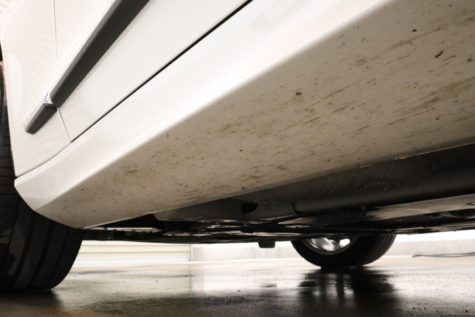 下地処理洗車のご用命でしたので、普段は見えず洗浄することが少ない箇所もキレイにいたします。室内側のドア下に鉄粉や汚れが付着しておりました。こちらもキレイにしてまいります。