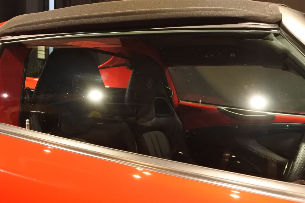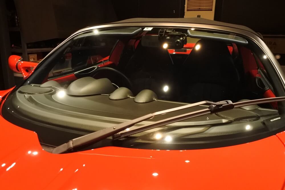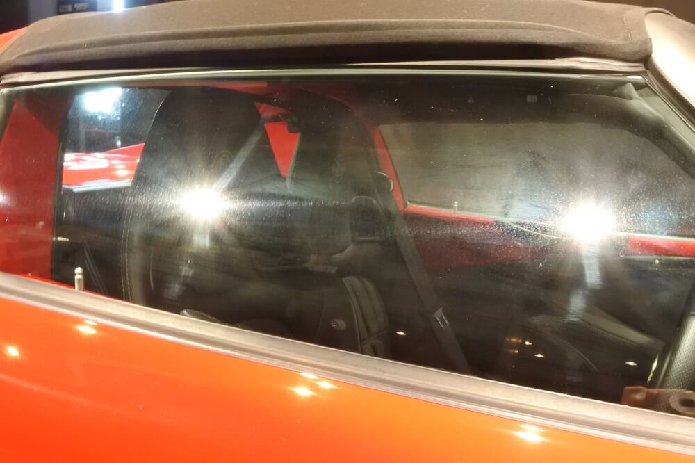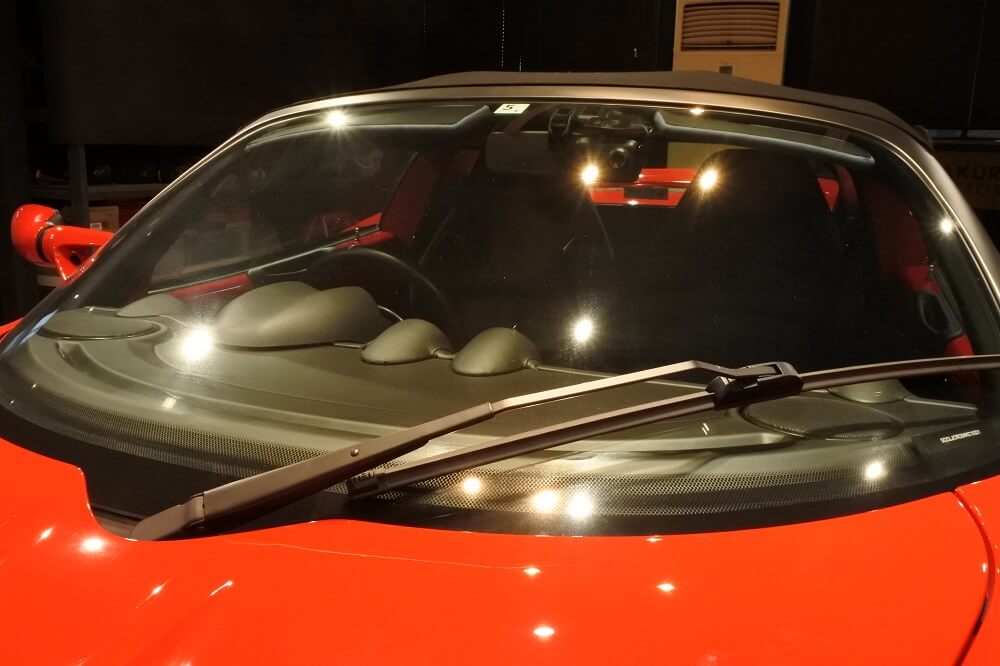 細部までに及ぶ洗浄が終了しましたら、全面ガラス撥水を施工してまいります。油膜を除去して撥水剤を施工します。雨天時の視界が良好になりますのでコーティングやメンテナンスと併せての施工をオススメしております。