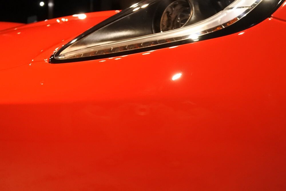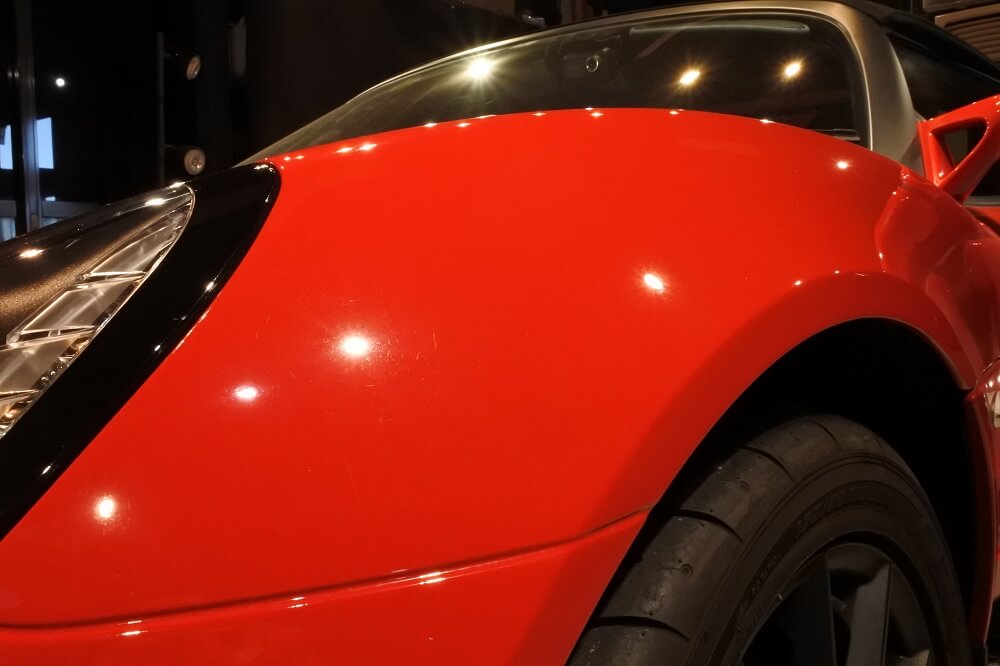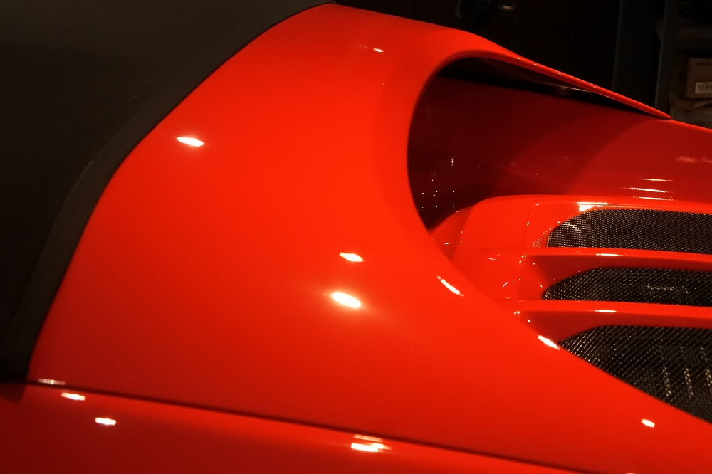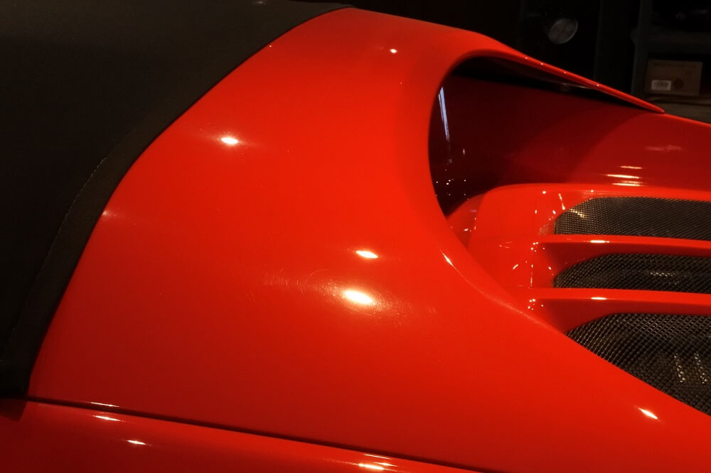 徹底的な洗浄と全面ガラス撥水、ホイール、室内コーティング施工が終了しましたので、ボディの研磨へ移ります。オールFRPボディの為、いつも以上に慎重に研磨していきます。