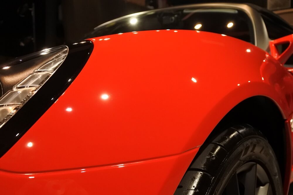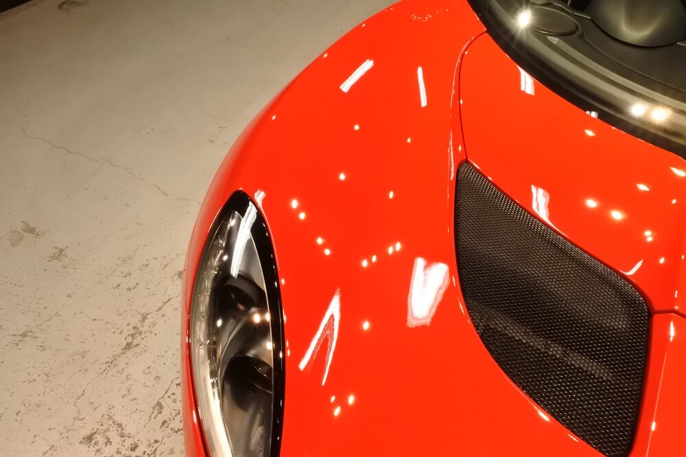 研磨が終了しましたらグロスアーマーを施工してまいります。グロスアーマーは3層の完全硬化型ガラスコーティングです。研磨で平滑にした塗装面のツヤを最大限引き出す為、新車のような美しい仕上がりになります。美しさだけではなく防汚性も上がるので、汚れたら早めに洗う事で落としやすくなっております。