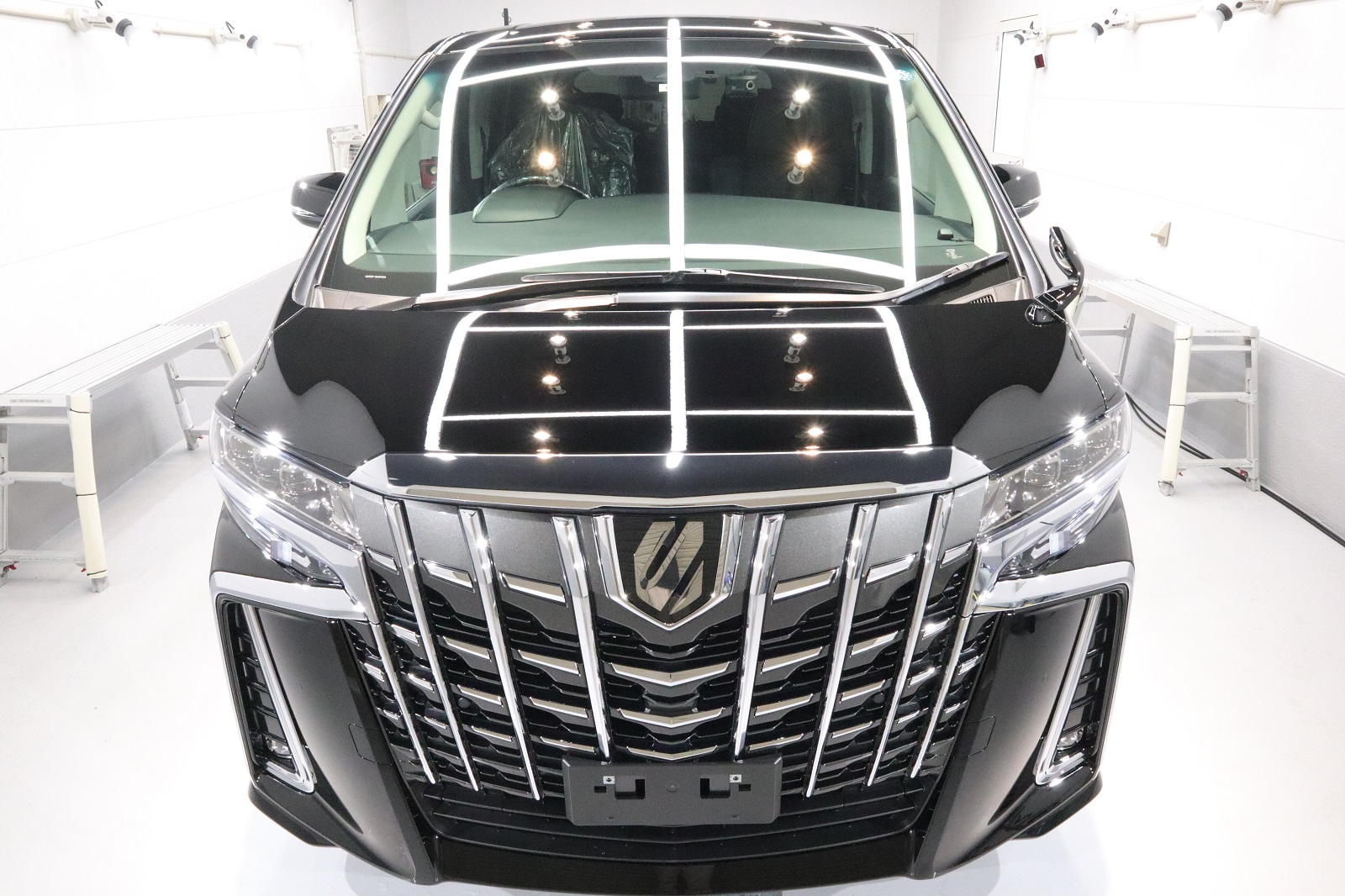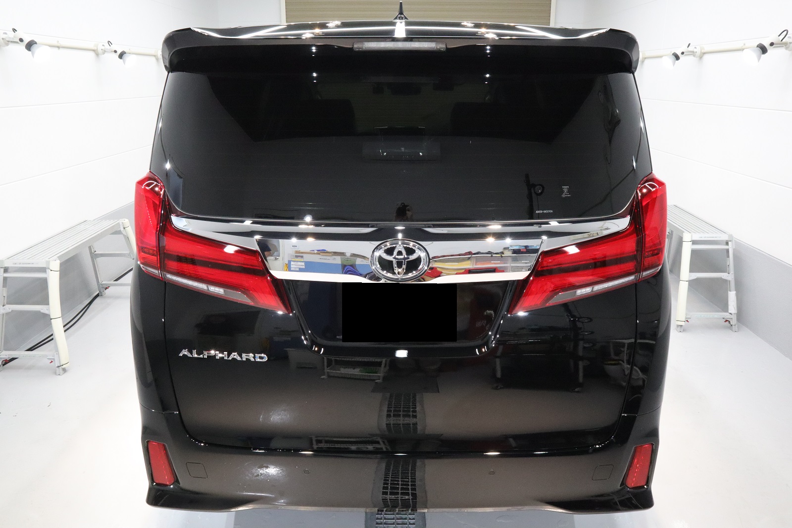 新車にてご入庫して頂きましたS様のアルファードですが、目立つキズは無いものの202ブラックという事もあり、小さな傷が所々にあります。研磨すれば除去できるレベルですのでまずは下地処理・細部洗浄から行っていきます。
