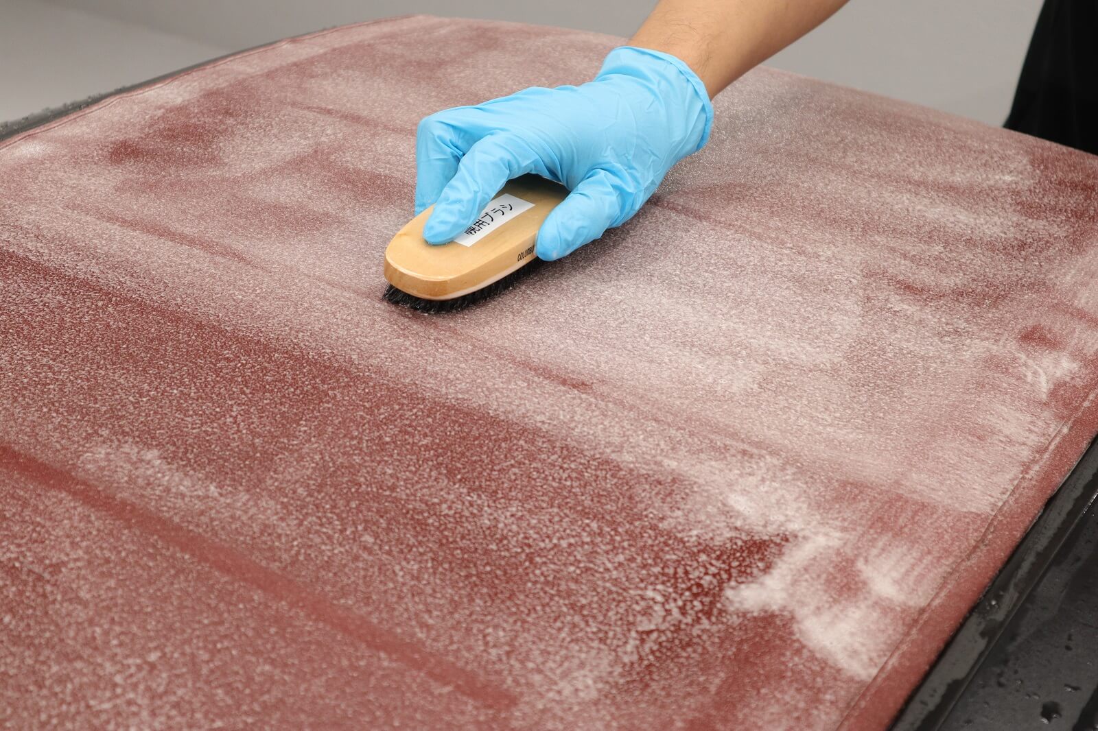 全体の洗車が終わりましたら、各部細部洗浄を行っていきます。洗浄が終わりましたらいよいよボディ研磨をしていきます。
