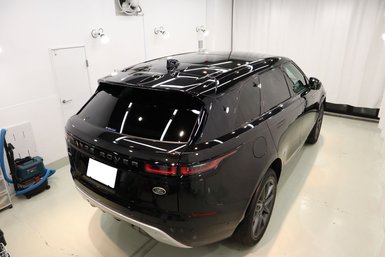 【横浜・港北】レンジローバー ヴェラール ライト研磨+グロスアーマー+ガラス撥水+室内コーティング+ホイールコーティング