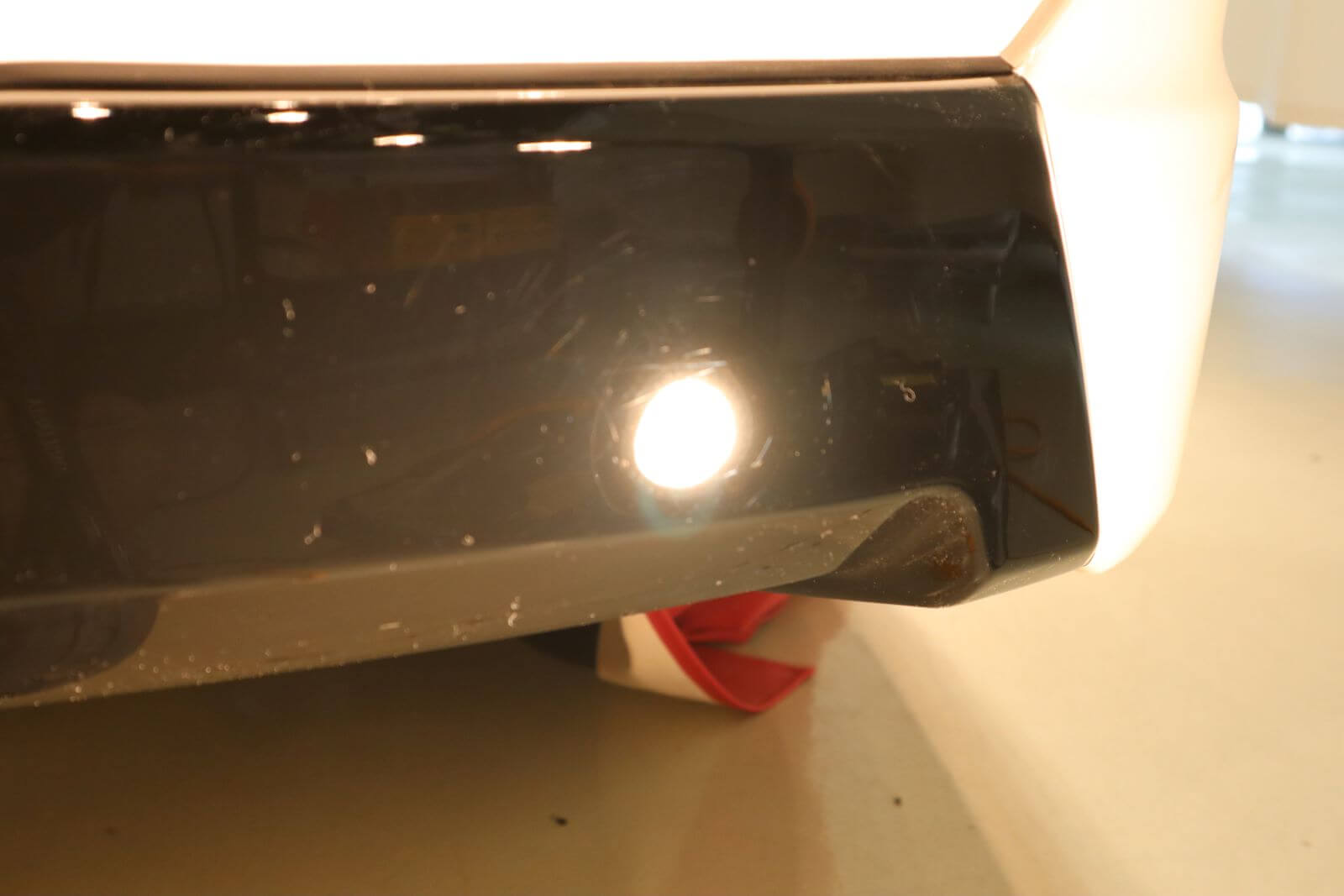 研磨後。ライトの写り込みが変わりました。白いお車でもこのような違いとなります。