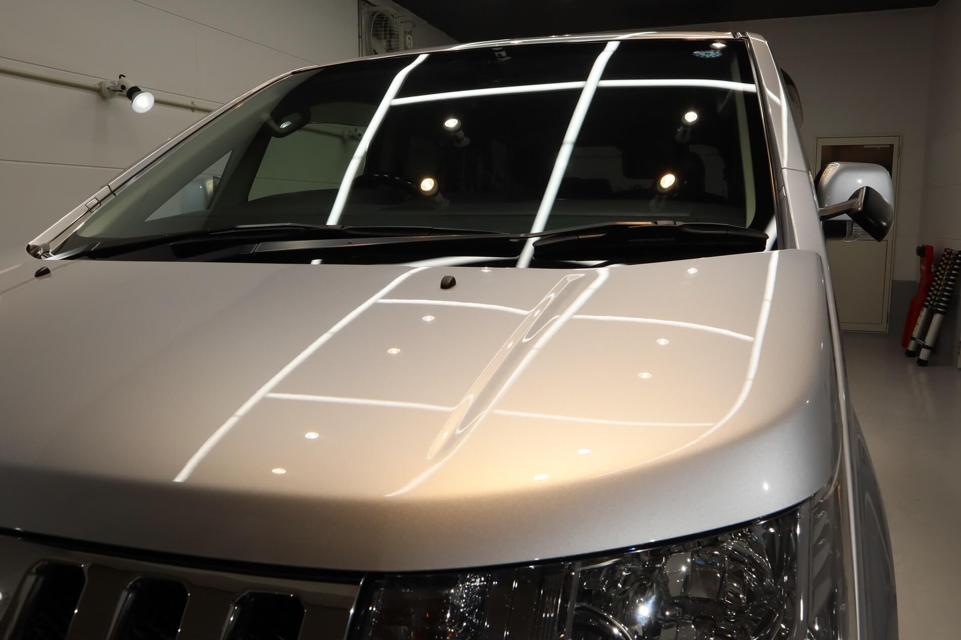 ガラス撥水も行い、照明の映り込みがとても美しいですね。とてもキレイに仕上がりました。