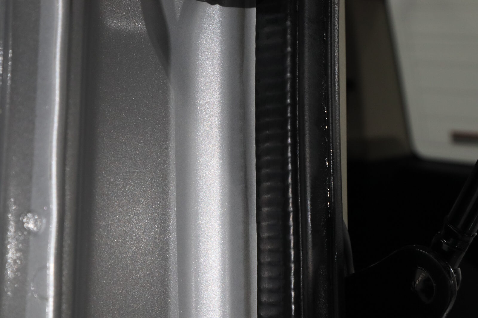 細部洗浄時に発見しました、ゴムモール部に溜まった泥汚れです。これを取り除くのはかなり大変ですが、このような場所もキレイにしていきます。