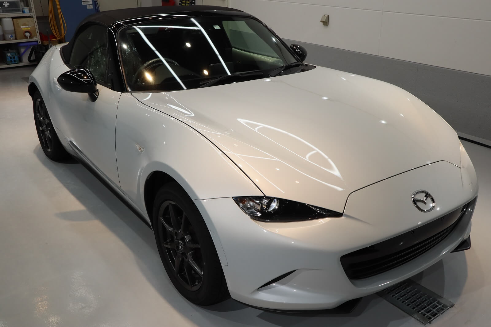 今回ご紹介するおクルマは、O様のマツダロードスターになります。大切にお乗りしているロードスターをもう一度キレイにしてお乗りしたいとの事で、今回のご用命となりました。O様のご期待にお応え出来ます様、しっかりと施工してまいります。