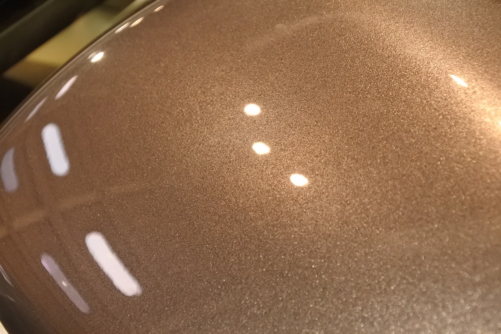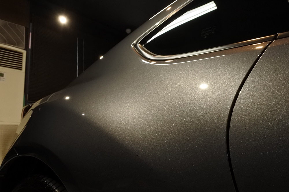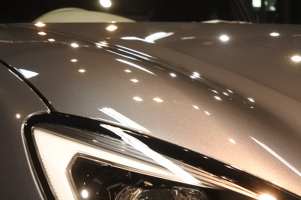 洗浄が終了しましたら、研磨へと移ってまいります。研磨は数年乗ったおクルマにするイメージがございますが、新車でも浅いキズが付いていたり、新車特有のモヤリがございます。これらは磨く事によって、塗装面がスッキリしてグロスアーマー施工後の美しさが増します。