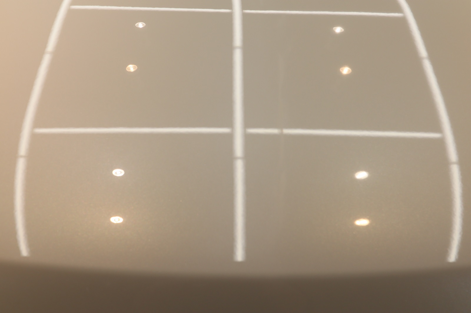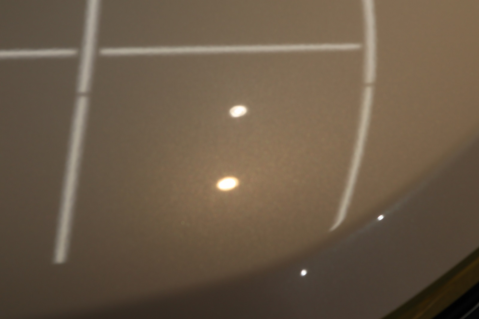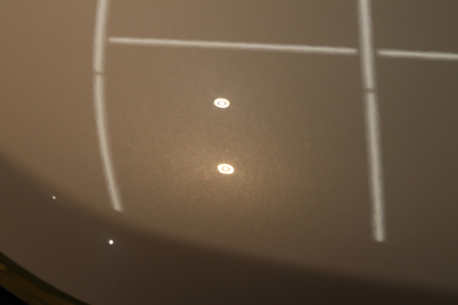 左と右の照明を見比べてください。左は照明がクッキリと映り込んでいるのに対して、右の照明はぼやけております。ここまで違いが出てきます。