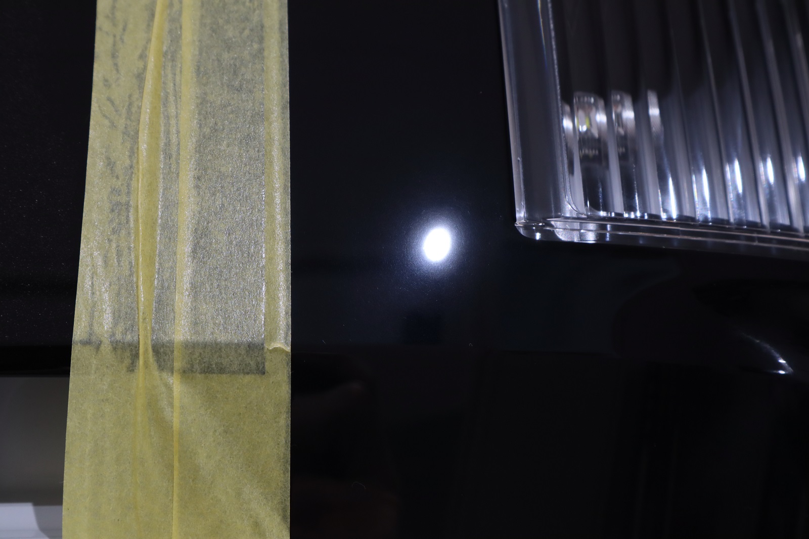 左テールレンズです。ピアノブラック部にグルグルキズが入ってますね。
