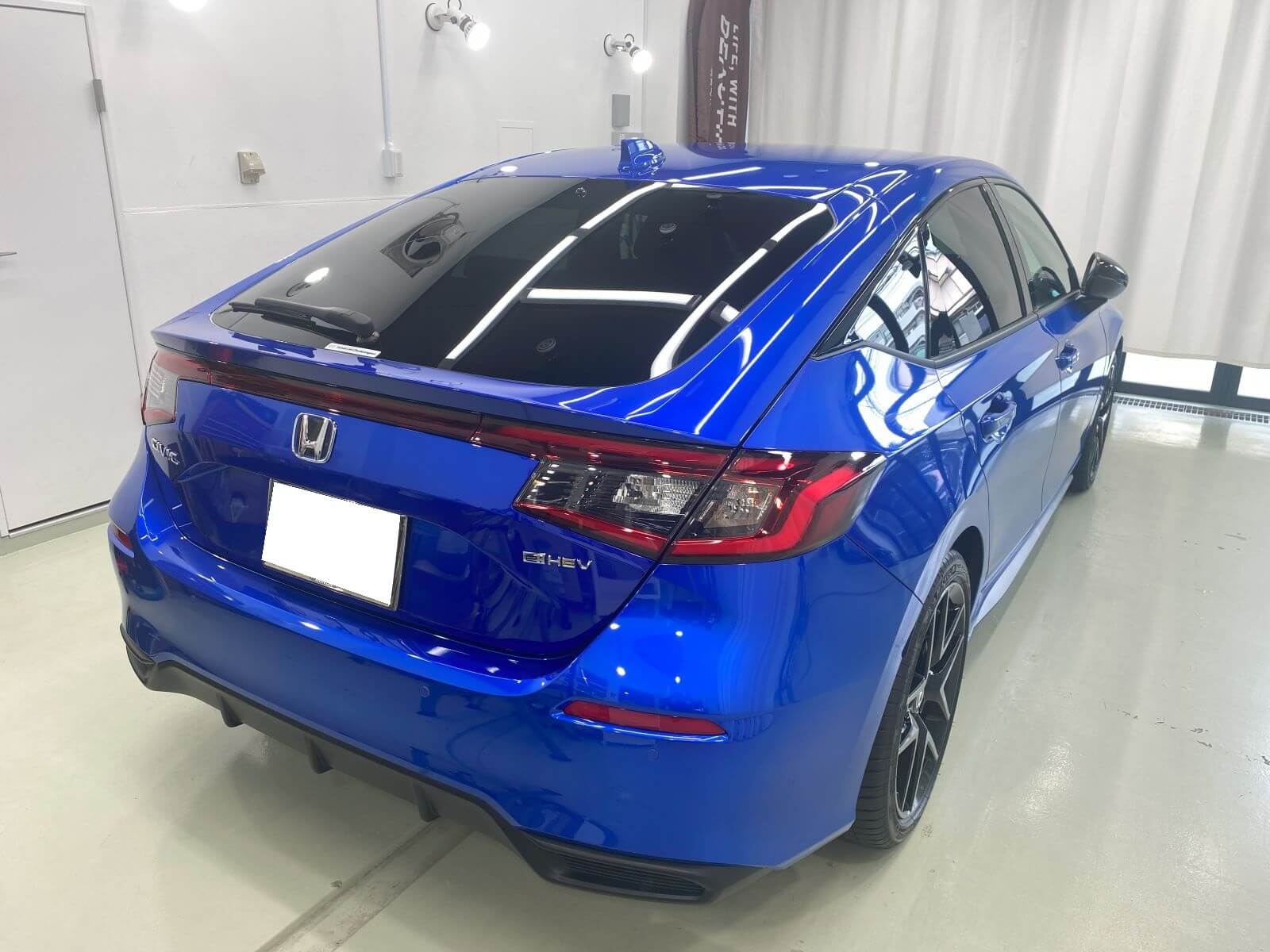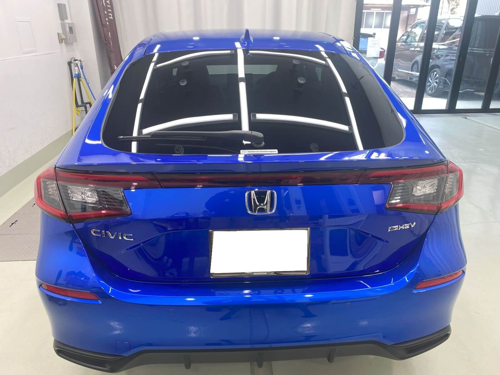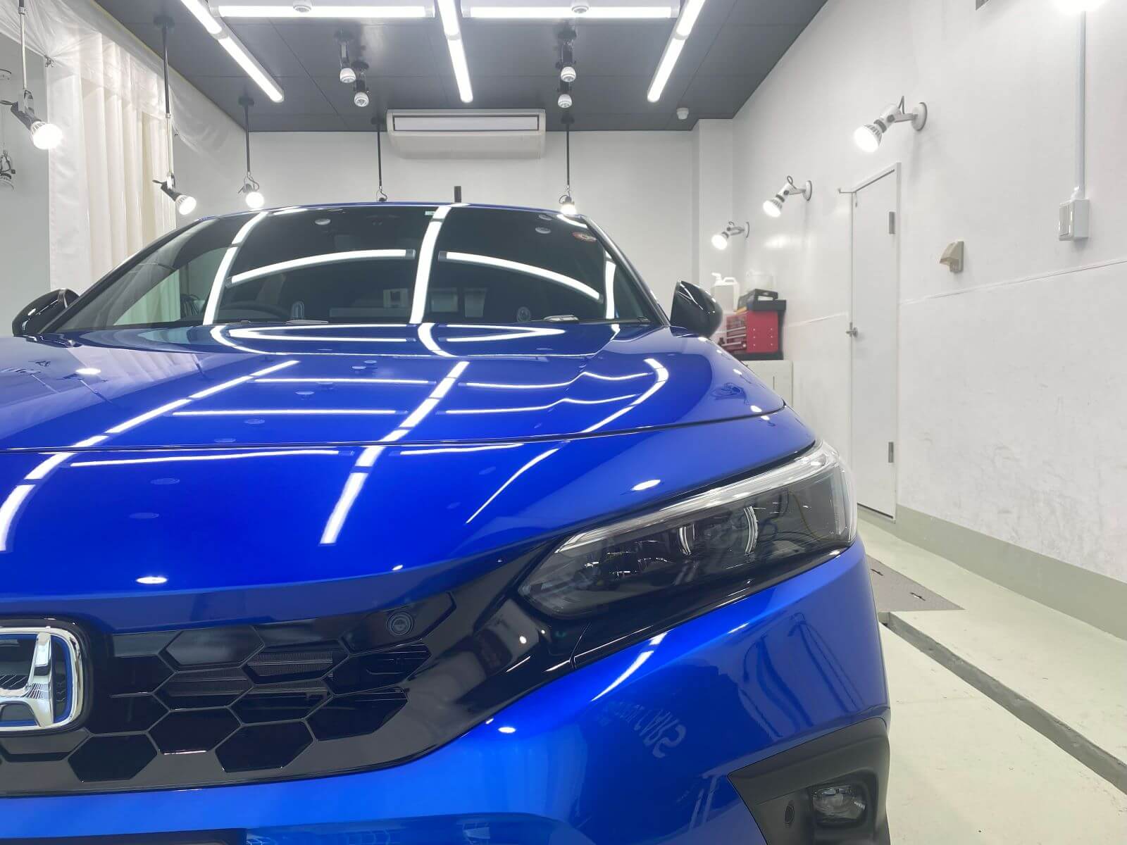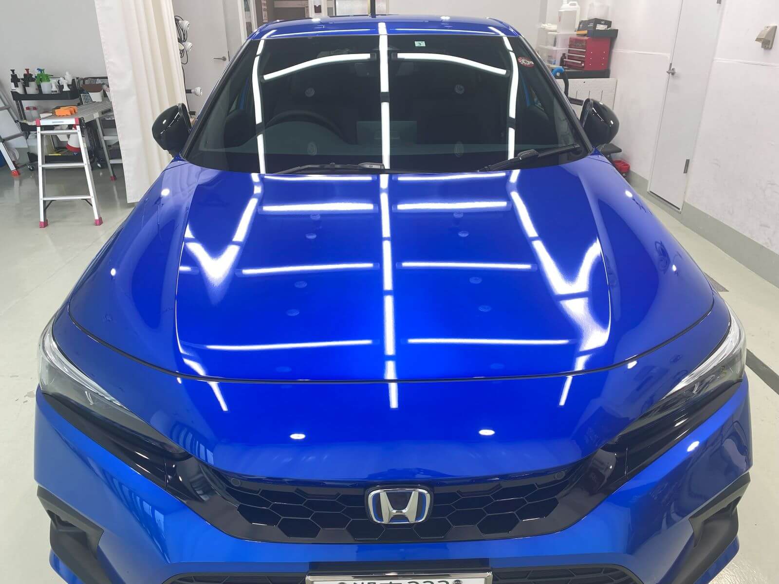 横浜港北です。【ホンダ シビック極艶ビューティフルコート+全面ガラス撥水+ホイールコーティング】の依頼でご入庫いただきました。