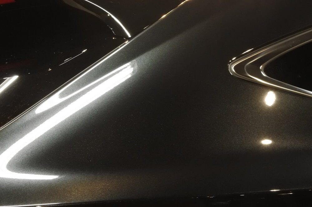 まず初めにシャンプーで洗車キズの原因になります砂埃や泥汚れを除去致します。シャンプーでは落ちない水ジミや鉄粉・タールピッチは専用の洗剤を使用して除去致します。今回非常にキレイな状態でしたので洗浄の写真はございません。