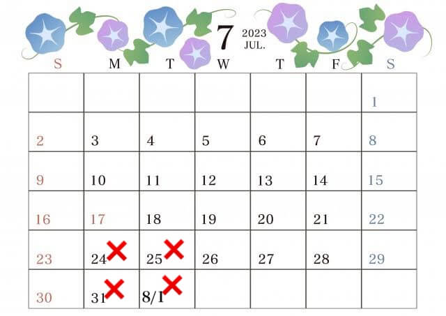 また、18:00以降でもご対応できる場合がございますので、お問い合わせフォームよりご連絡下さい。8月のスケジュールは追って発表させていただきますが、月曜日と火曜日、お盆期間はお休みの予定です。