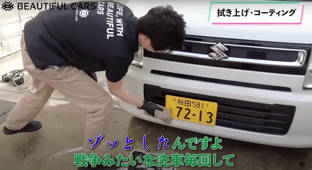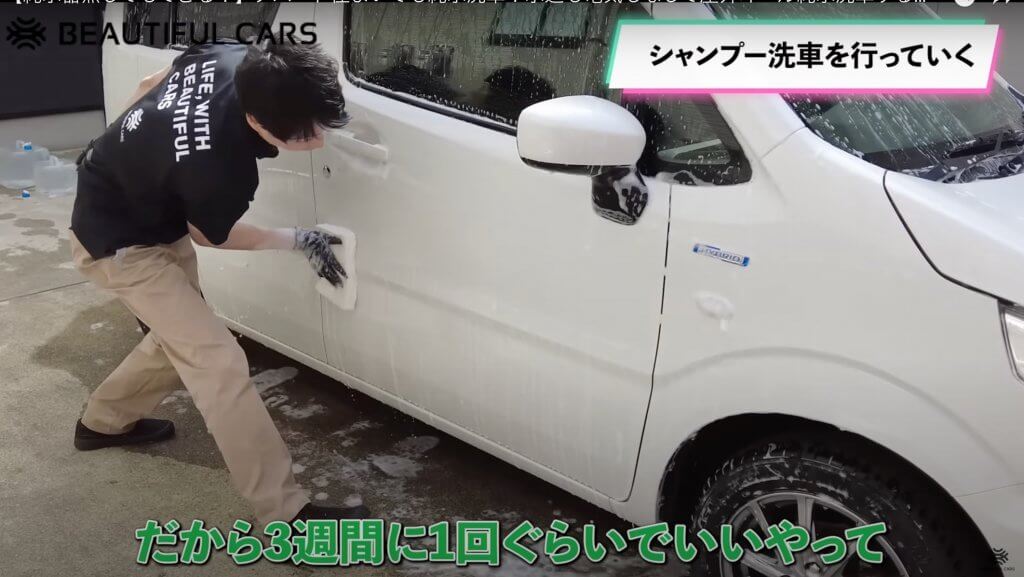 この動画ではアパート住まいにも関わらず、電源なし、水源なしの場所で最初から最後まで純水で洗っていた弊社社員の洗車方法を紹介していますが、ビューティフルカーズの洗車方法と用品を使用し、週に1度の洗車が3週間〜月に1度の洗車の頻度に変わったそうです。