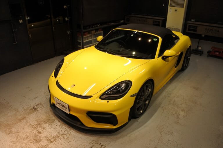 ポルシェ 718スパイダー【ハード研磨+グロスアーマー+全面ガラス撥水+ホイールコーティング+室内ガラスコーティング】 – SAKURA FACTORY