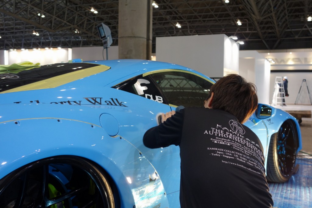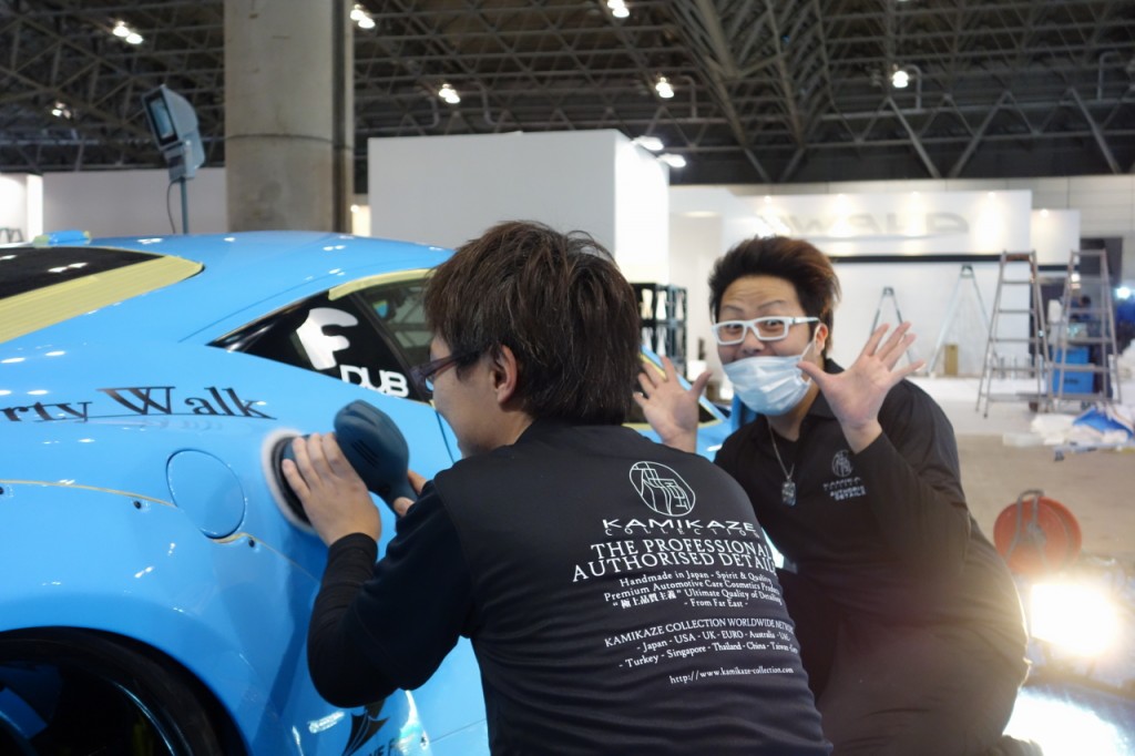日本のカーディテイリング用品と技術を世界に発信するブランド「KAMIKAZE」。こちらの 認定 DETAILERの一員として、リバティーウォーク様、フォージアート様の出展車両のディテイリングを施工させていただきました。全国から集まった精鋭の皆様と一緒に作業させていただく、大変良い機会を与えていただきましたこと、心から感謝いたします。