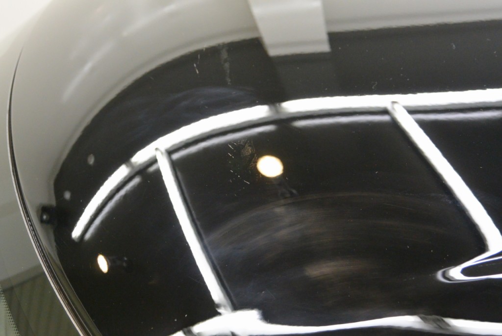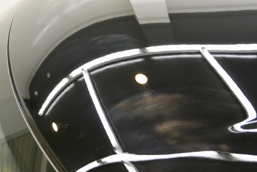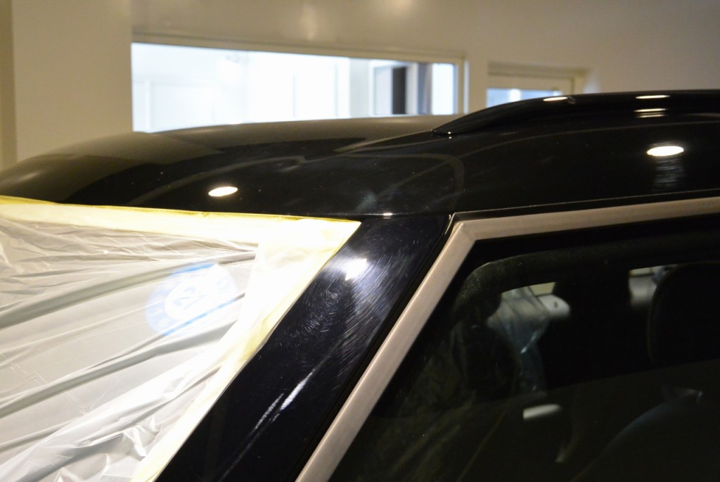 こちらのお車は、ルーフが黒でとてもお洒落なのですが、この2枚の写真をご覧下さい。細かい傷で酷い状態です。ご入庫いただいた際、オーナー様もご覧になって驚かれていました。これは傷の入り方からして、おそらく新車納車時から付いていた物なんです。確かに黒は傷が目立ちやすいですが、だからといってこんなに傷を付けて良い訳は無いと思います。