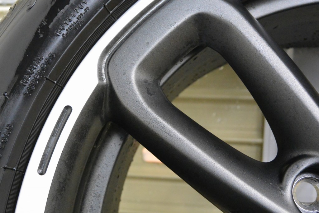外れた状態の夏用ホイールにコーティングを施工します、水ジミを専用の洗剤で綺麗にした後コーティングいたします。