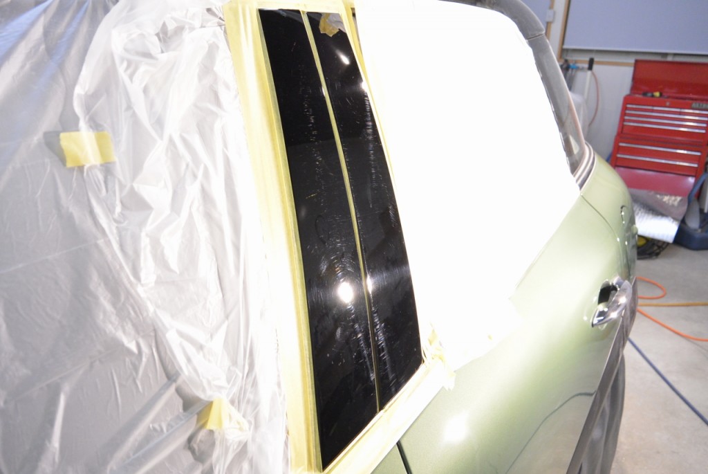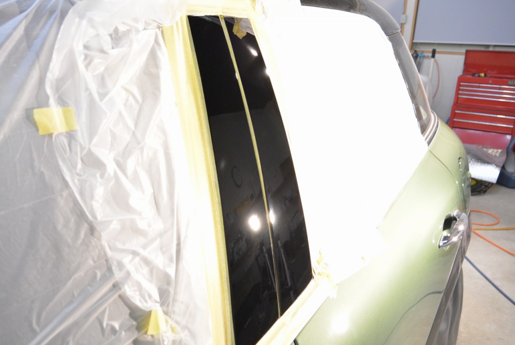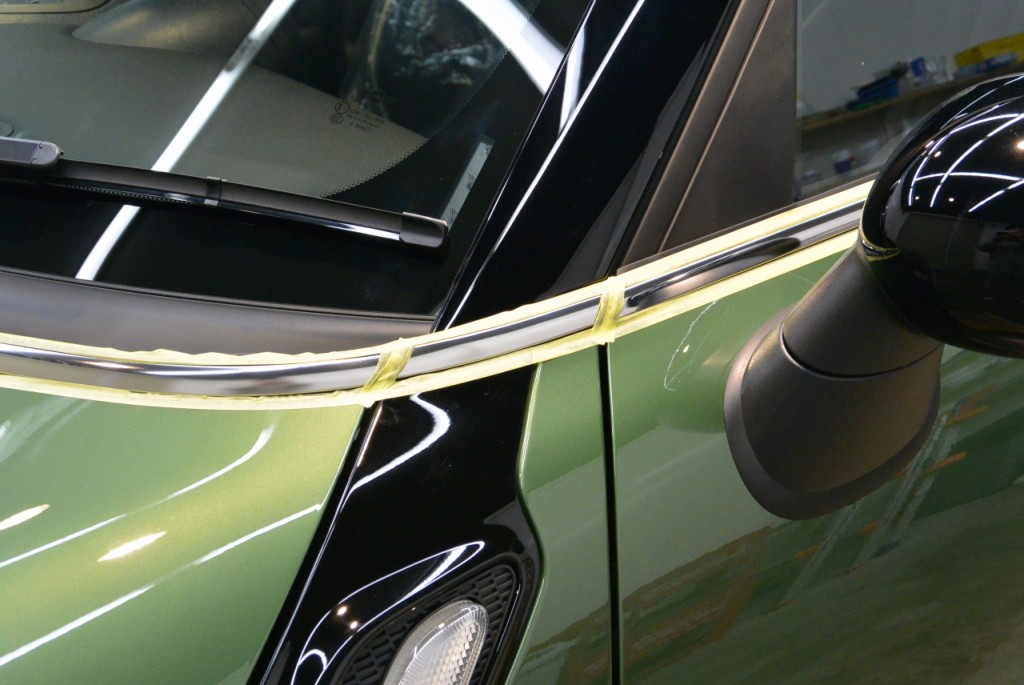 ミニ クロスオーバー 軽研磨+グロスアーマー+金属モールコート+全面ガラス撥水コーティング+夏用ホイールコーティング