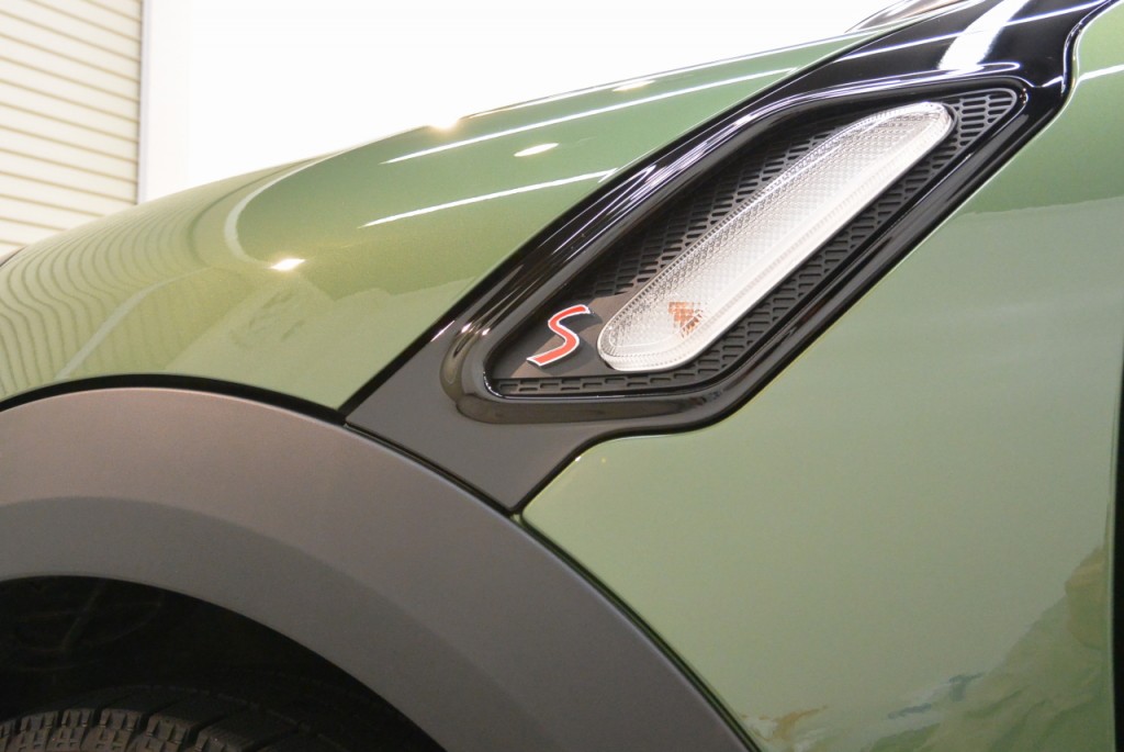こちらのボディーカラーは「ジャングルグリーンメタリック」お車のキャラクターにとても良く合っていると思います。無骨になりがちなカーキ色ですが、メタリックが光の加減で綺麗に輝き、華やかさも感じさせてくれます。グロスアーマーはこの様な塗装の美しさを邪魔せずに、さらに引き出してくれます。また、塗装されていない樹脂パーツにも施工でき、とても自然な感じに仕上がります。