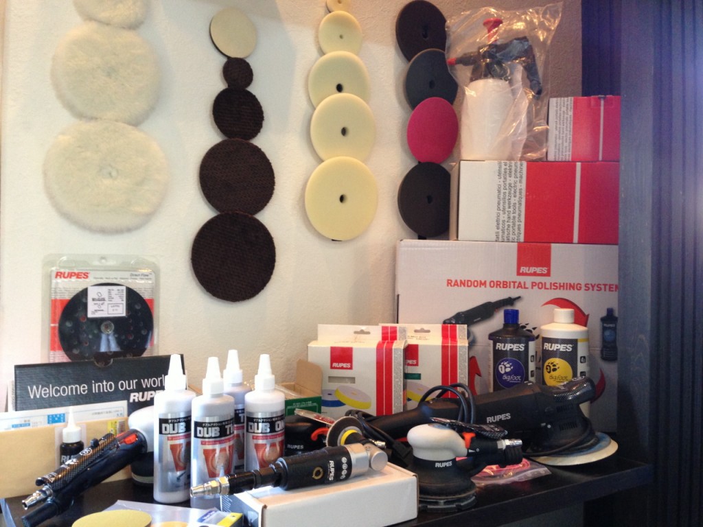 また、車を磨くポリッシャーの代理店さんもいらしており、色々な説明を聞く事ができました。ちなみに実習車はその方のお車でした。