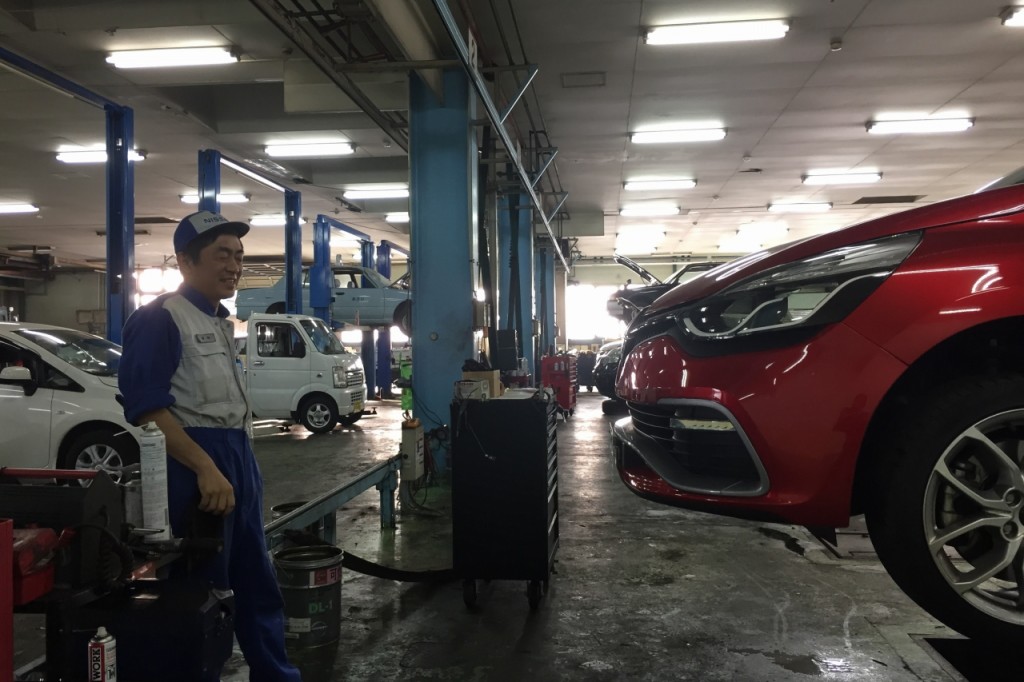 私、当店代表の村上は、ルノー秋田が併設されていた日産の店舗で整備士をしていた事がありました。その時の先輩であり、現在もルノーの整備を担当してくださっている河村さんです。