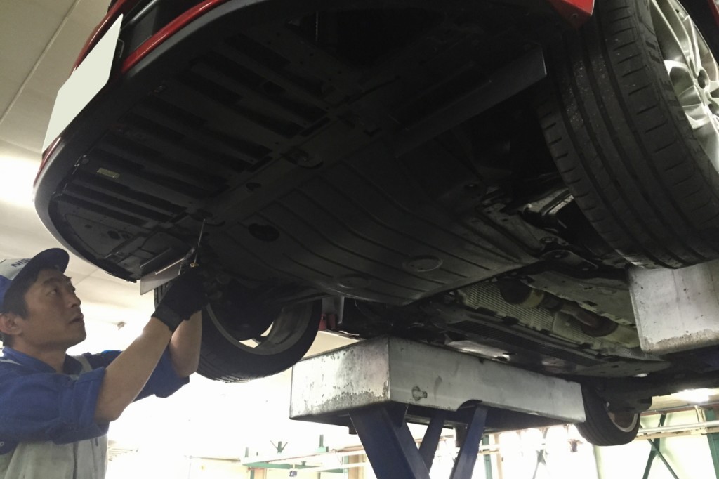 当店デモカーのルーテシア号、足回りからの異音の確認の為、秋田日産臨海店にお伺いいたしました。以前ルノー秋田を運営していた秋田日産では、最新モデルでも、きちんとアフターサービスは受け付けてくださるんです。