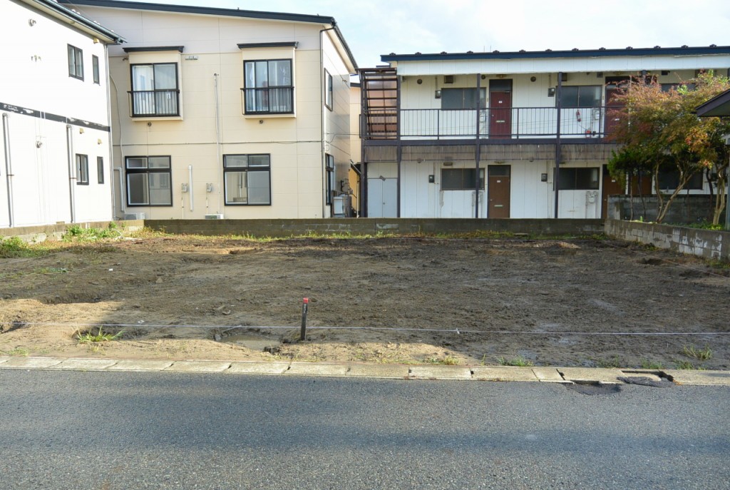 向かいに建設中の新店舗。地盤改良工事が完了いたしました!社長がすごいお金がかかると言っていましたが、建物も下地が大事だと言われ納得したそうです。確かに工事前に比べると見た目でも全然違って見えます。